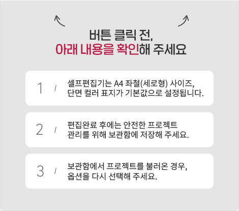 옵션 변경으로 인해 표지디자인의 책등 두께가 변경되었습니다. “수정하기” 버튼을 클릭하여 책등 디자인에 이상이 없는지 확인해 주세요.